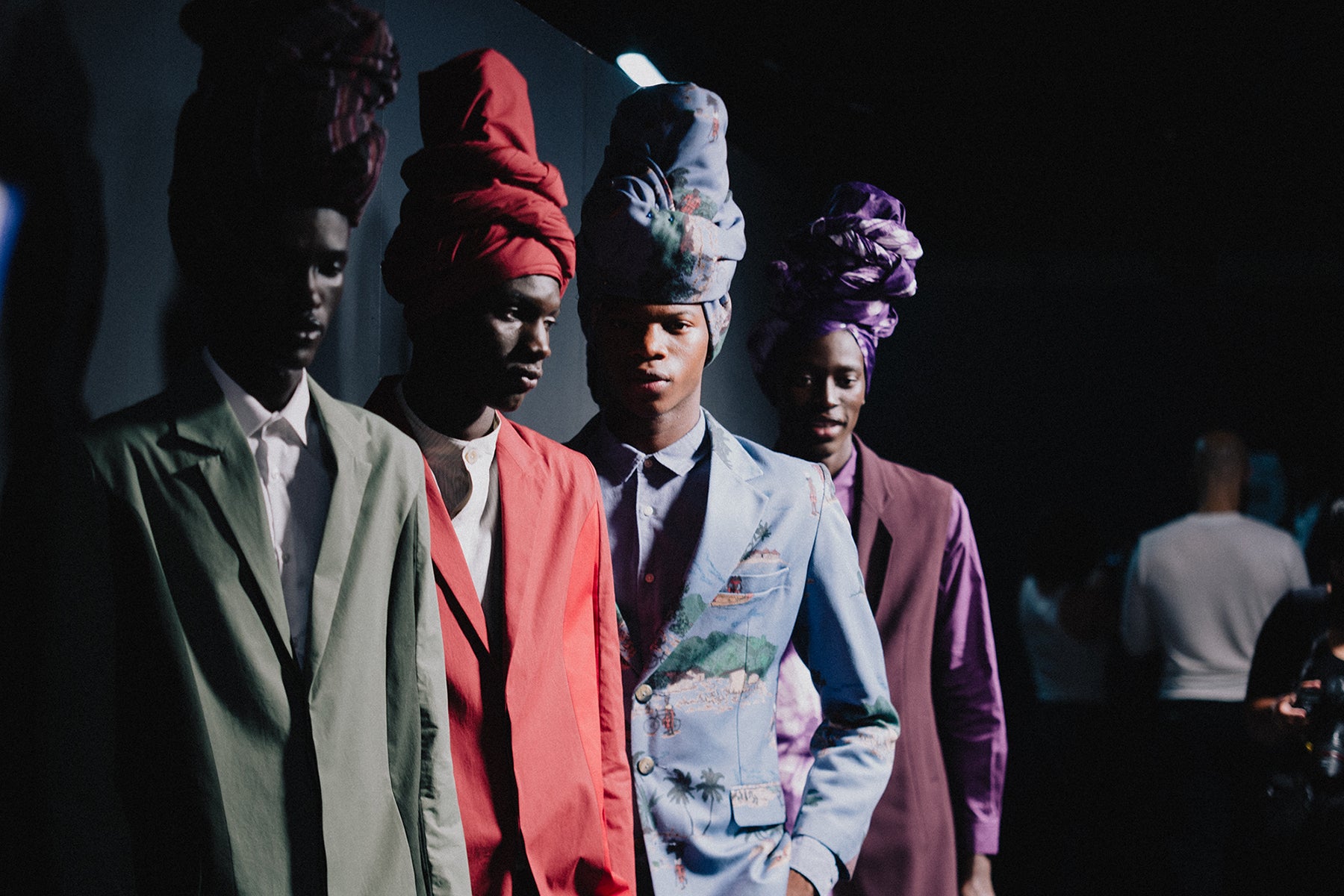 Complementing the tie-dye pieces are fun, colourful graphics which unify the London Fashion Week show space and collection. These are provided by Yinka Ilori, a long-time friend of Labrum’s and an incredible artist.