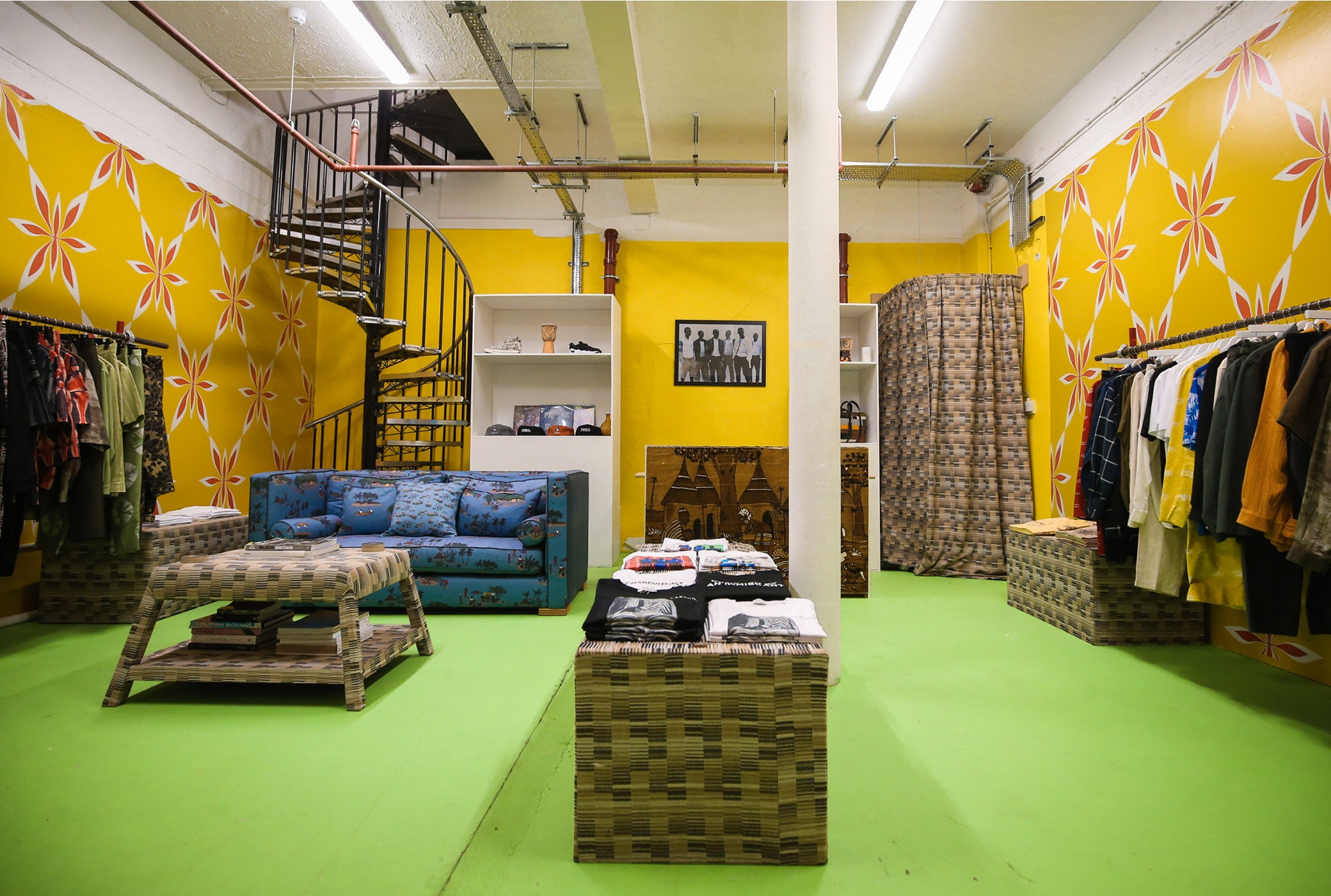 Designed in partnership with Yinka Ilori, the store is an homage to LABRUM’s previous collections utilising the bright colour palettes for the walls, floor and fixtures. The flower pattern that appears throughout and was taken from our ‘Poetics of Movement’ collection is inspired by Adire cotton cloth, a traditional North Nigerian indigo-dyed textile. Custom made furniture using signature LABRUM prints is all designed by LABRUM's founder and creative director Foday Dumbuya and available to buy in store.