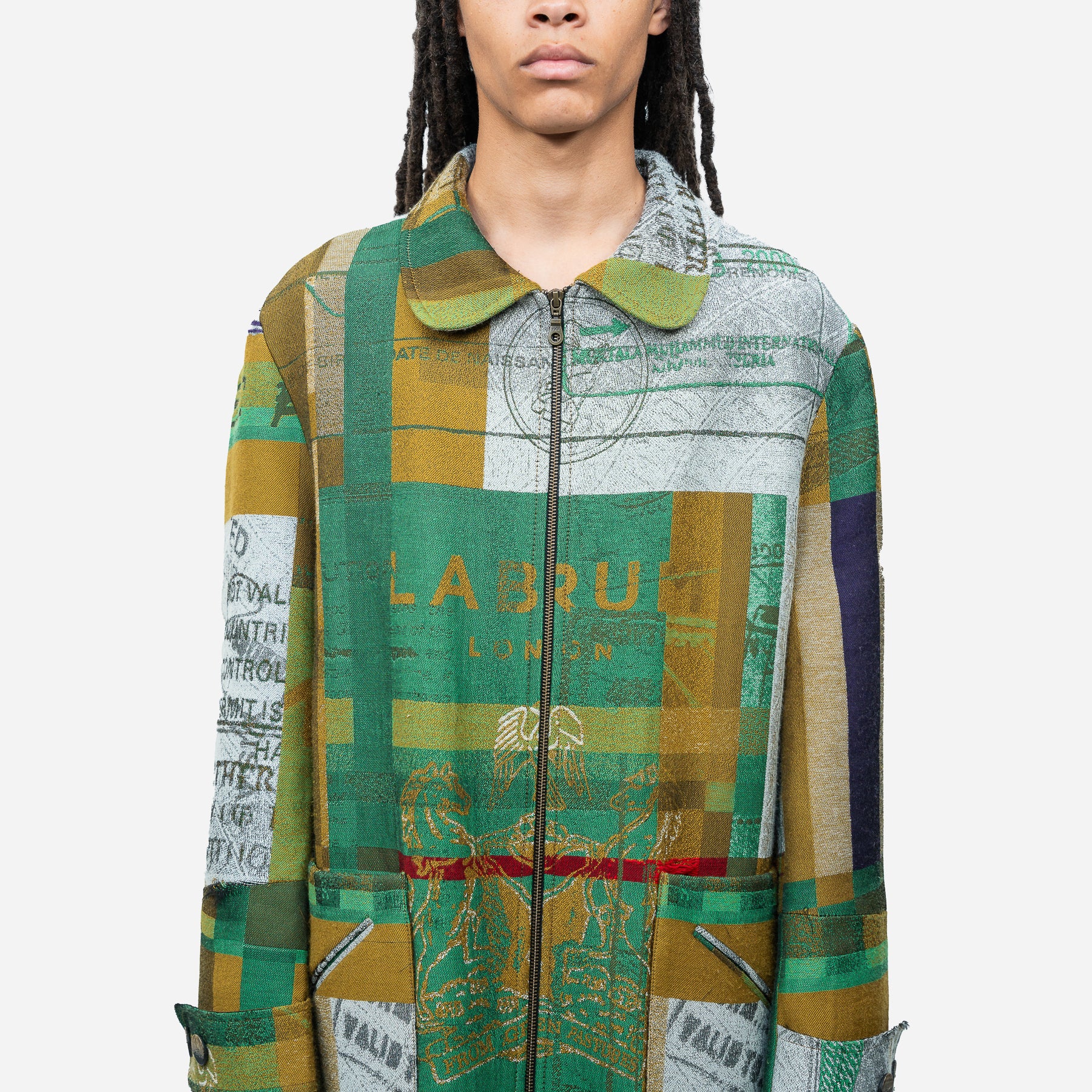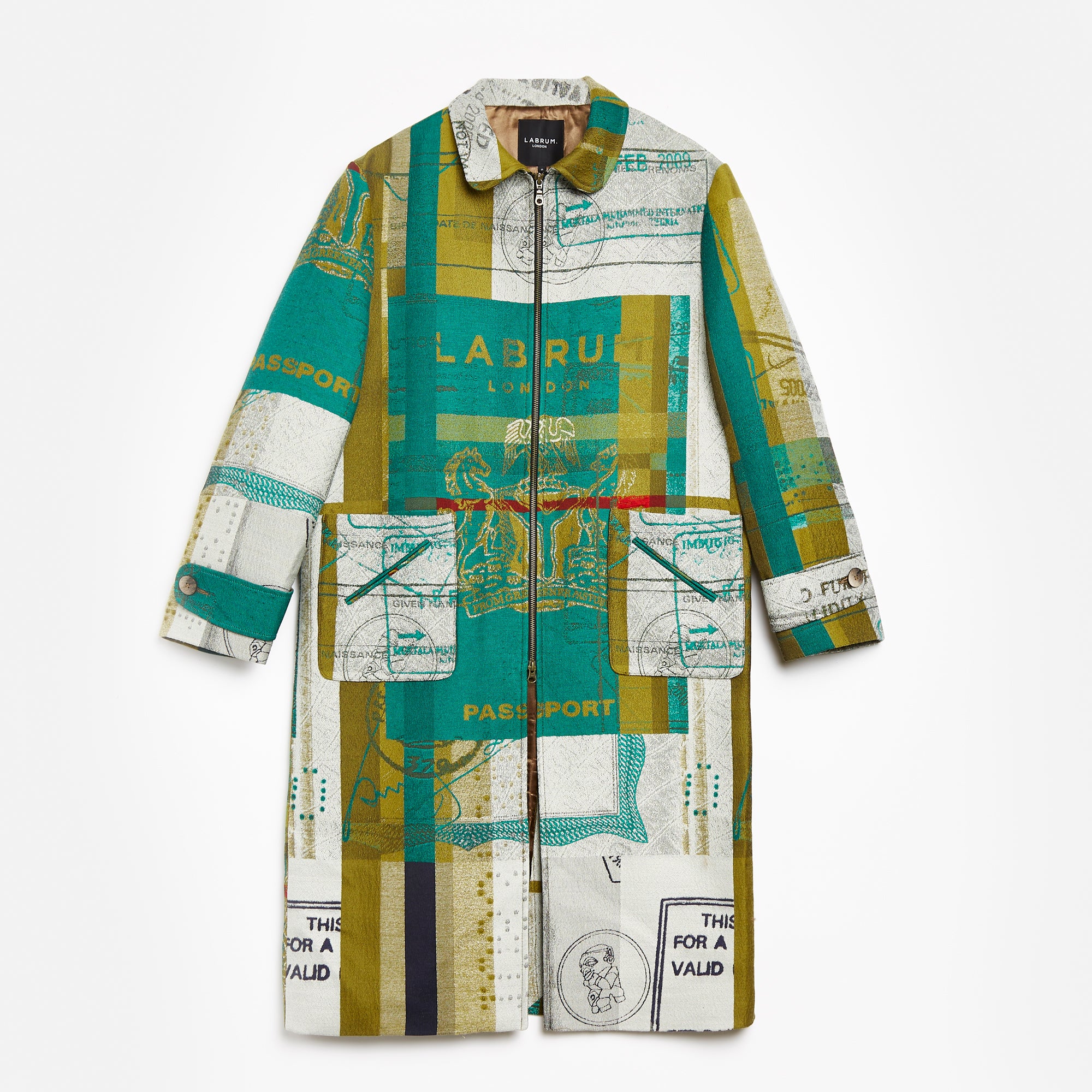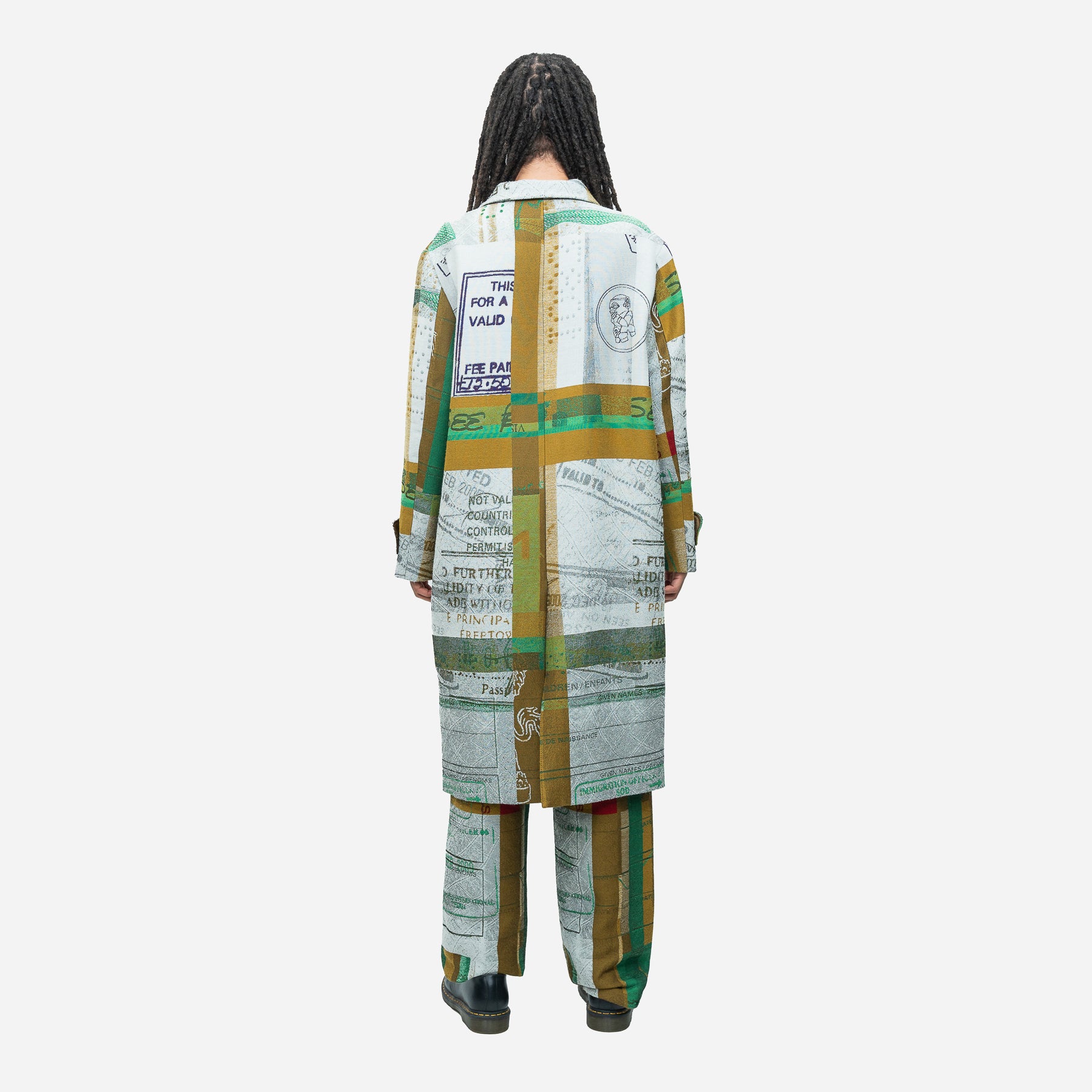 Ya-Alimamy oversized coat in multicolour. All over wool customised passport print jacquard developed in-house. Peak lapel collar. Three-pocket styling. Welt pockets at front. Vents at back hem. Decorative flaps with buttons at cuffs. Fully lined.