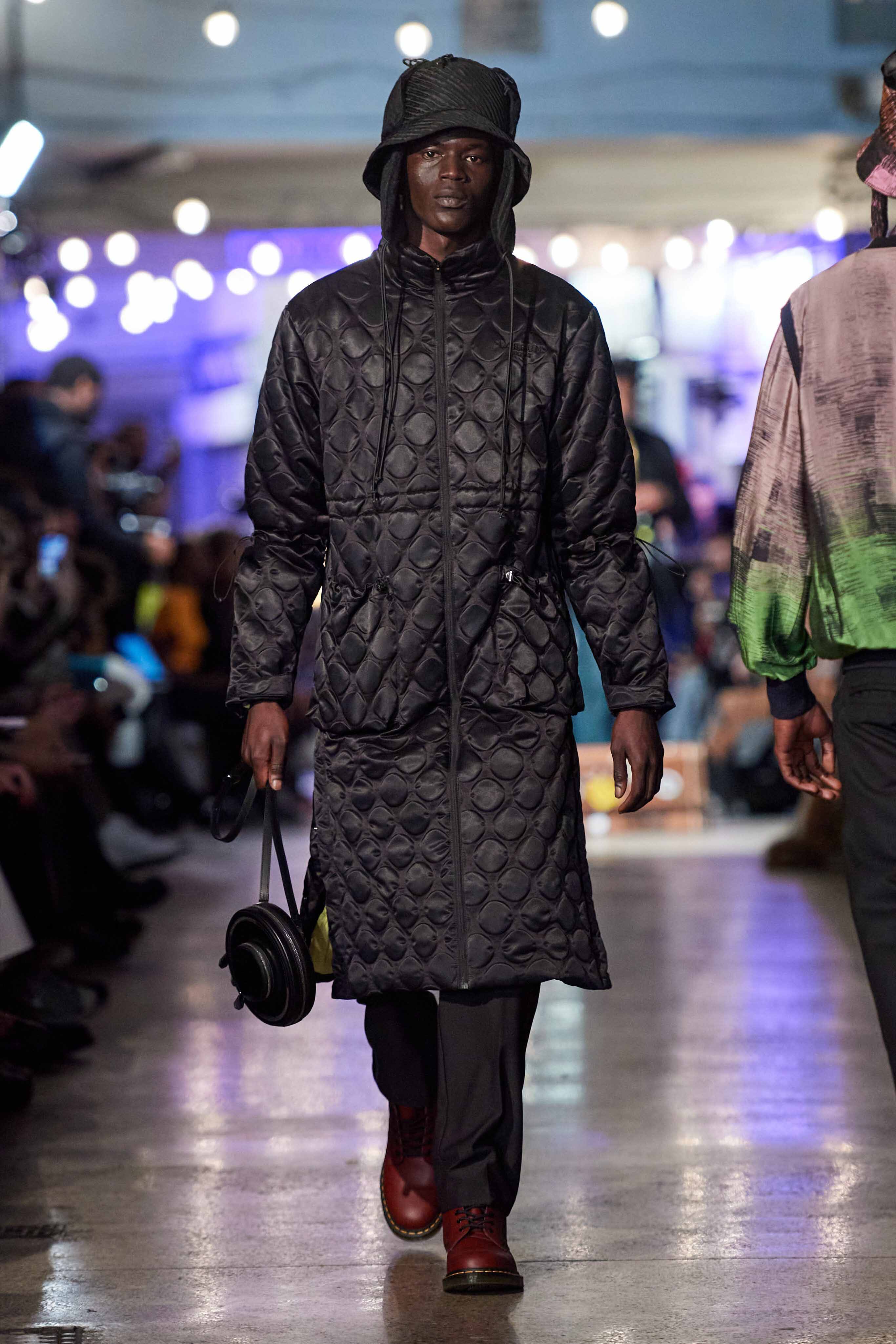 Award winning artist Yinka Ilori has provided set design, “I wanted to bring the idea of borders to life. Taking inspiration from the collection and Foday’s use of textures and materials, I created a series of modular arches which are clad in bubble wrap – a reference to one of the pieces in the collection - and will act as seating for the show. The structures mimic and represent borders and the idea of exit and entry points.