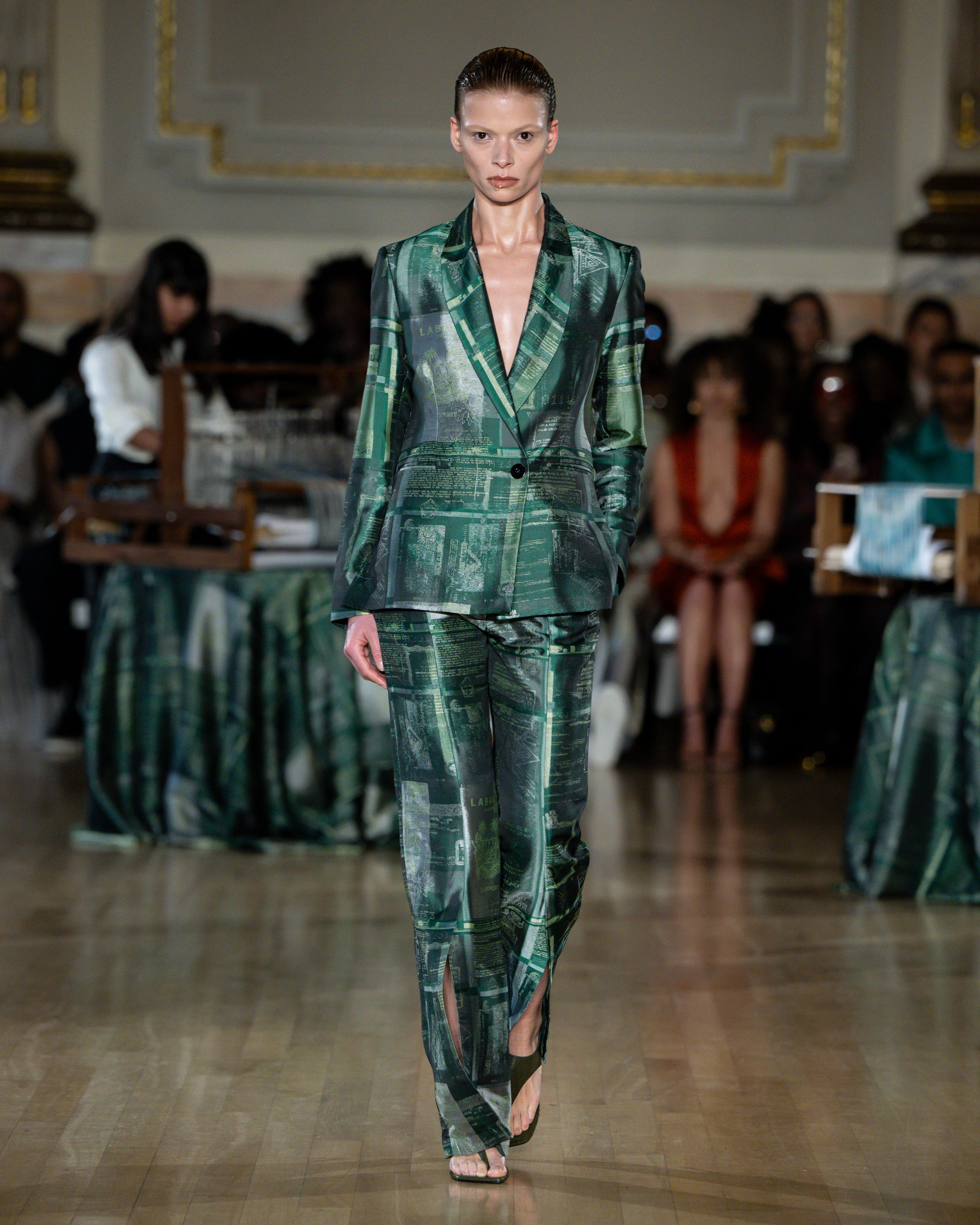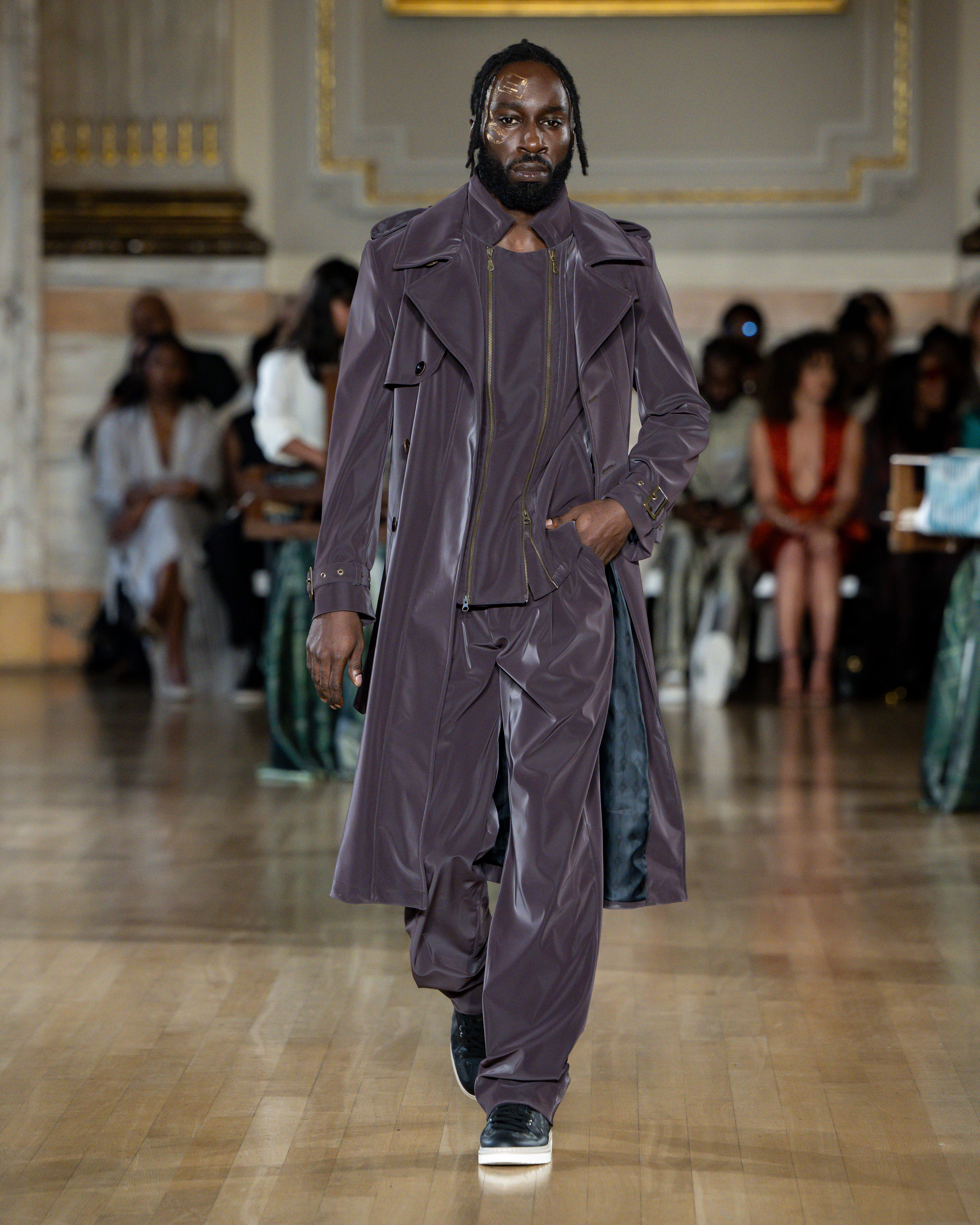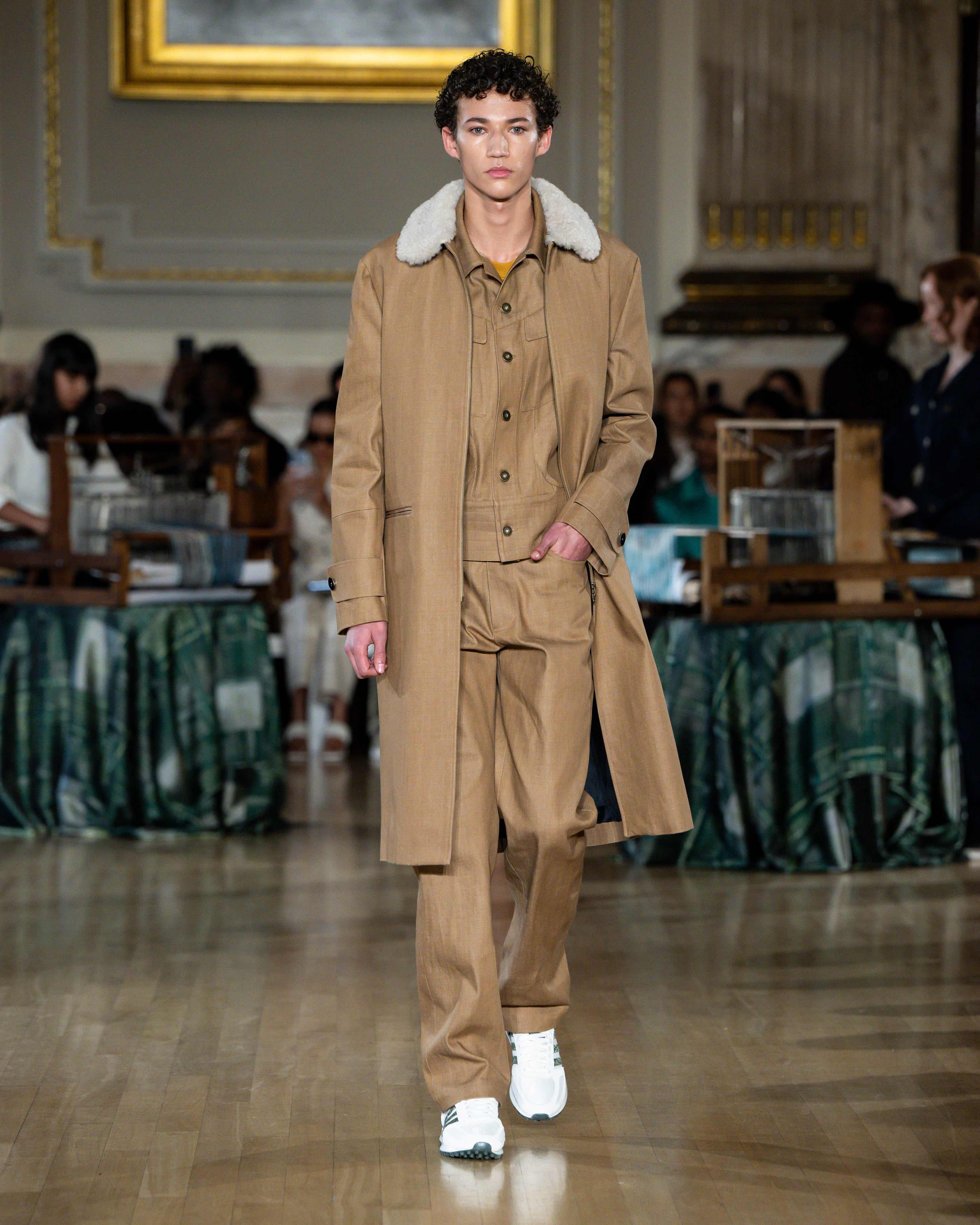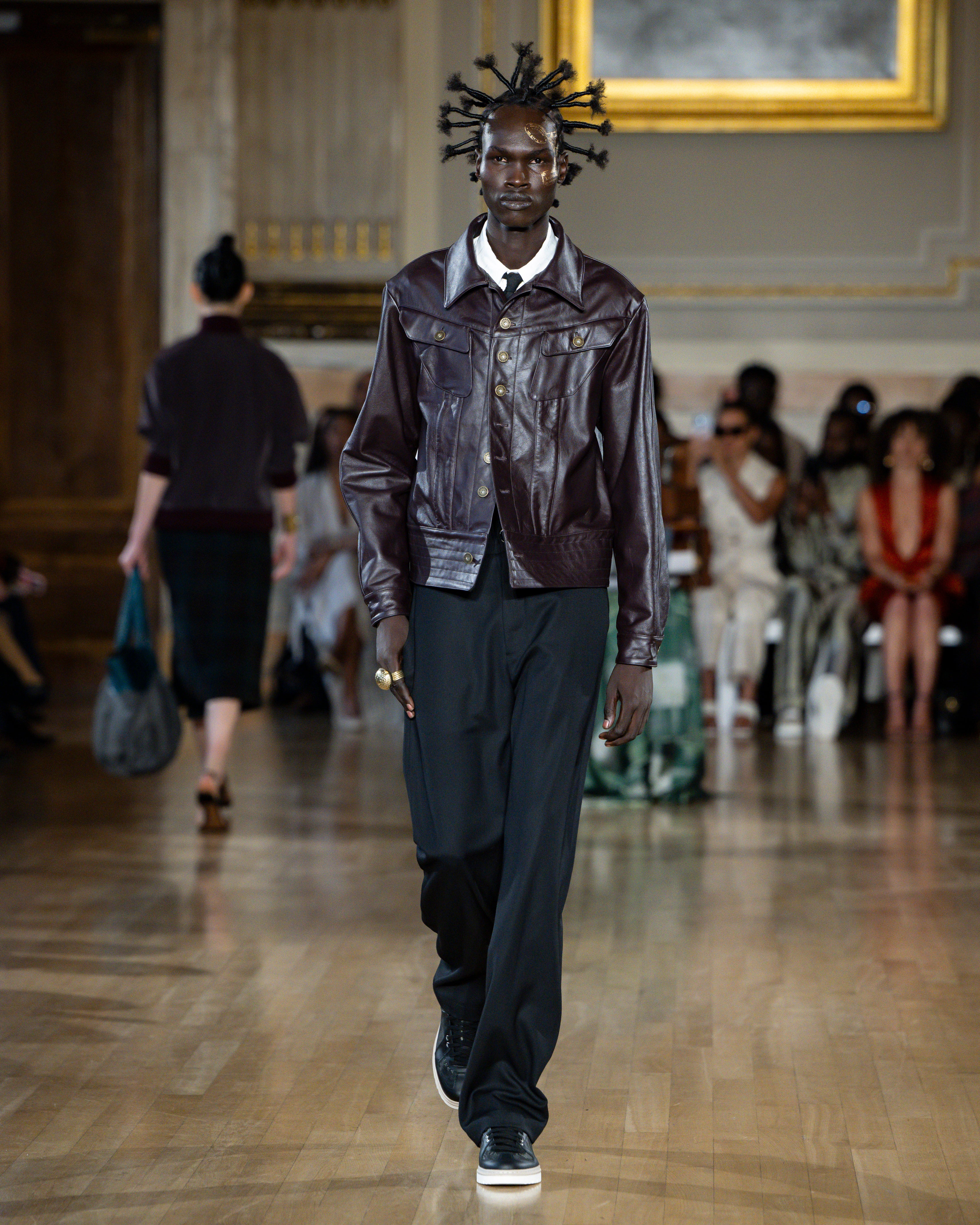 British tailoring remains the foundation; precise, structured, intentional, but it becomes a base for global craft. Tailoring reaches across menswear and womenswear equally this season. Suiting is empowerment. Structure is protection. Form is pride.