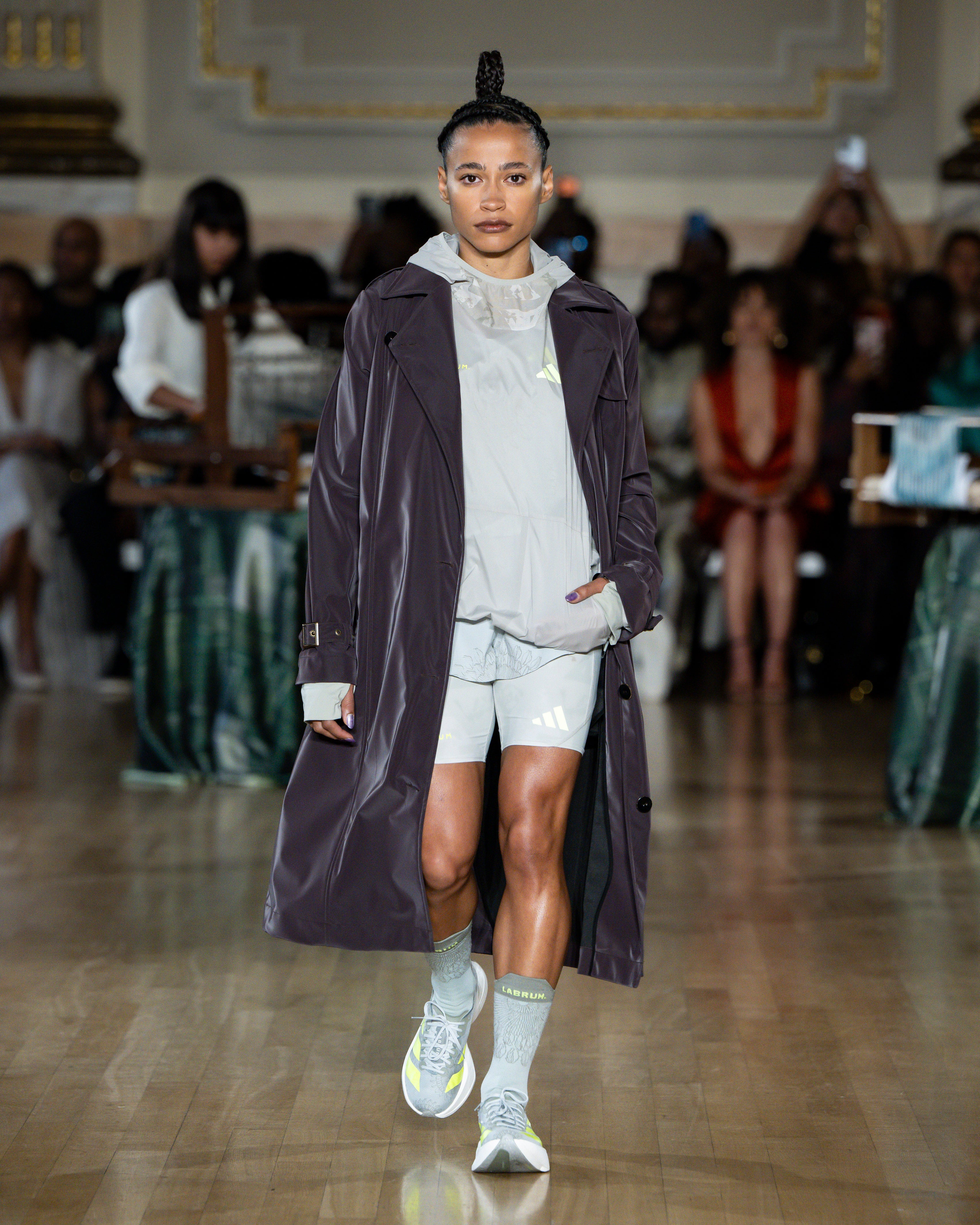 Showcased alongside LABRUM’s AW26 collection were select pieces from the upcoming adidas x LABRUM running capsule, fusing cultural heritage and performance. An edit of the reimagined running apparel - including shorts, singlets, and compression sleeves - debuted alongside an all-new adidas x LABRUM Adizero Evo SL performance silhouette. The full adidas x LABRUM running collection will be announced on Tuesday 03 March.