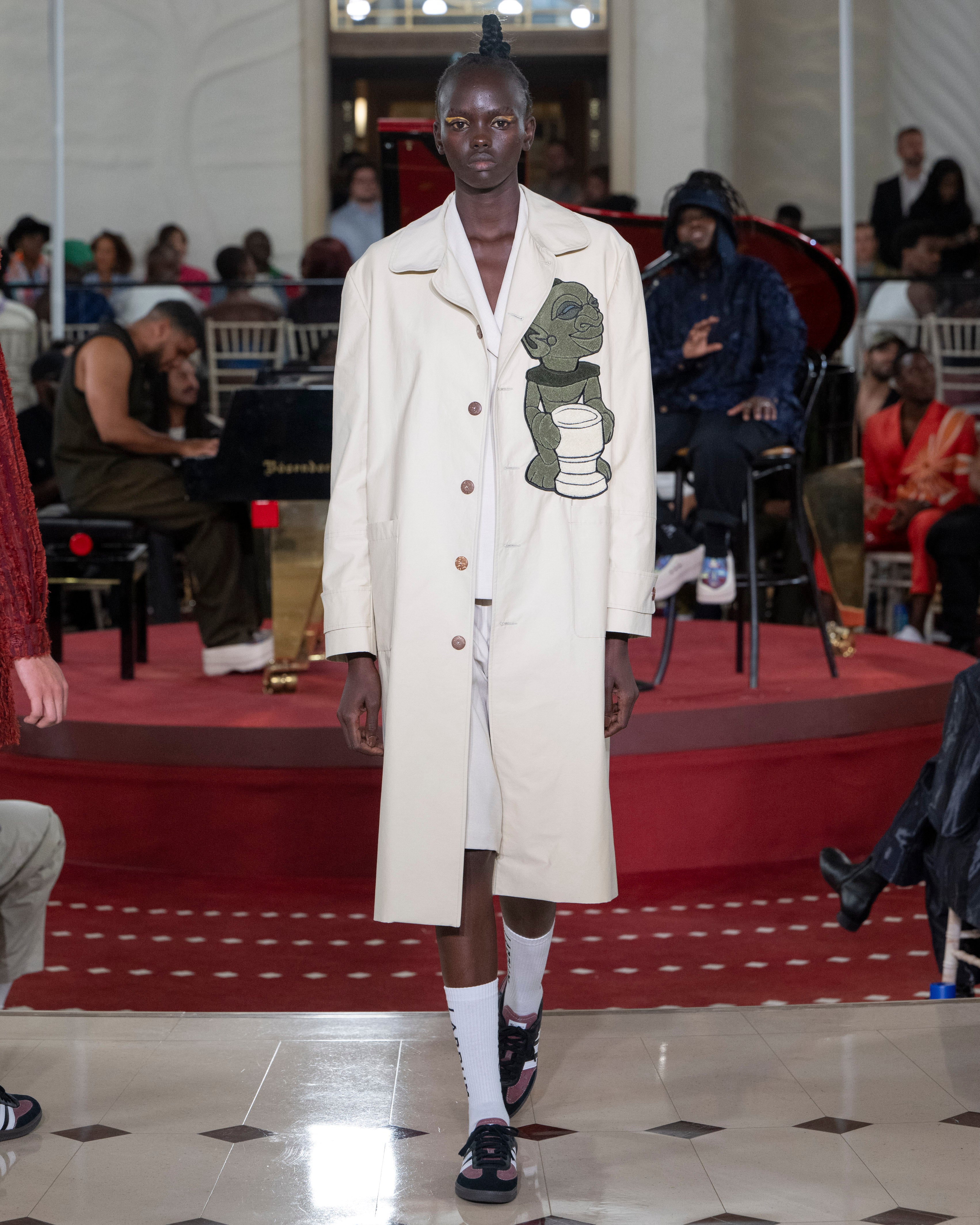 Inspired by the Nomoli figurines; the lasting remnants of a bygone Sierra Leonean and Liberian empire, LABRUM’s SS24 collection examines the strength of cultural identity, the depths of human connection and the threads of migration that weave us together. The result is an emotional, resilient and culturally rich story that pays homage to the past, embraces the present and encourages a connected future.