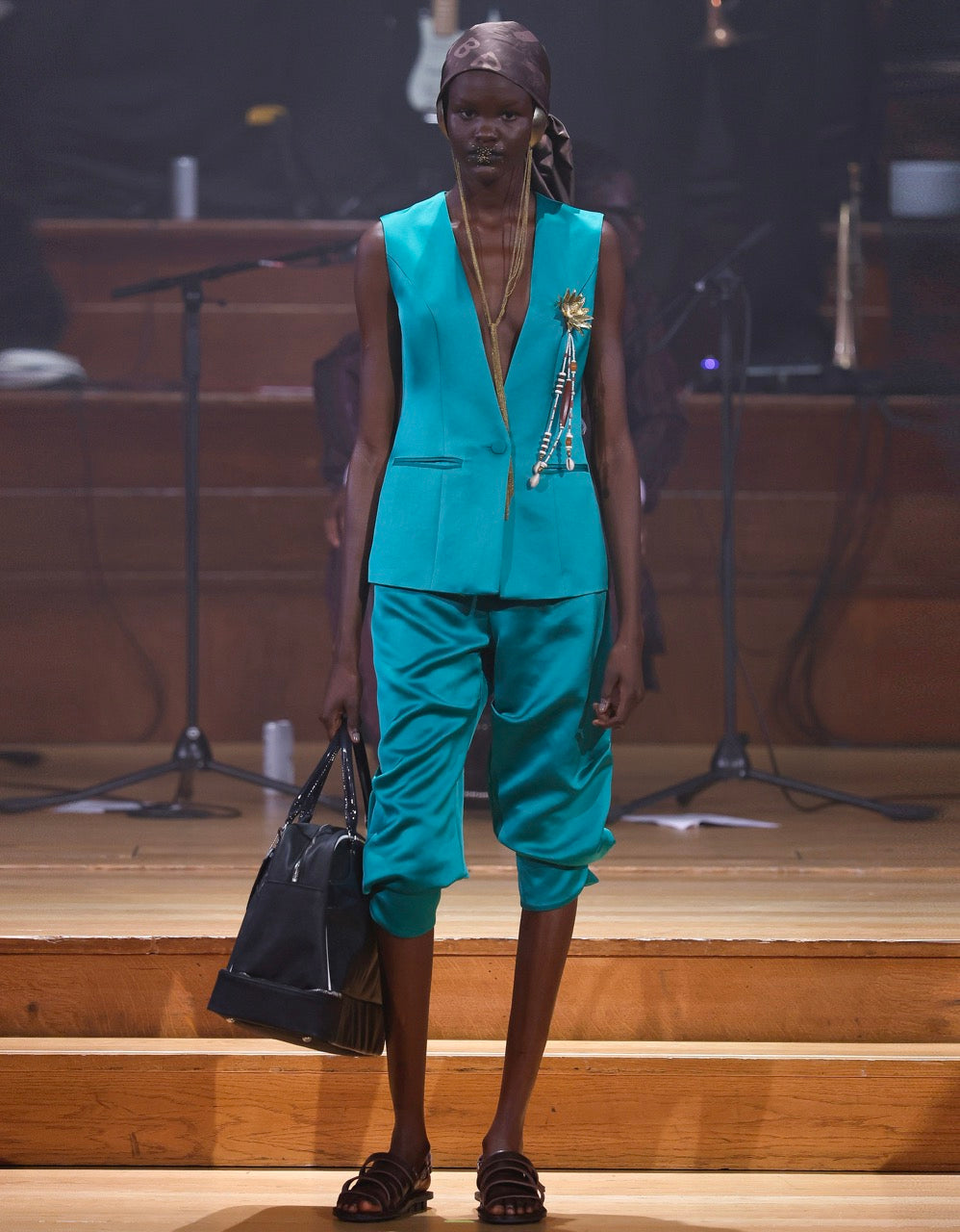 LABRUM’s signature showpieces are reimagined in this collection, a reminder that the freedom of movement — or cultural osmosis — is infinite and continues to evolve. Each showpiece is a living archive, carrying the untold stories of those who previously possessed it. With this collection, the idea of official documentation is diffused into the DNA of each piece, quietly alluding to the imperceptible process of osmosis. Military references reflect those individuals who are sent to preserve and uphold government orders. Silhouettes are structured and tailoring is sharp, creating a juxtaposition between the garment and the vibrant green, turquoise and crimson illuminating the collection.